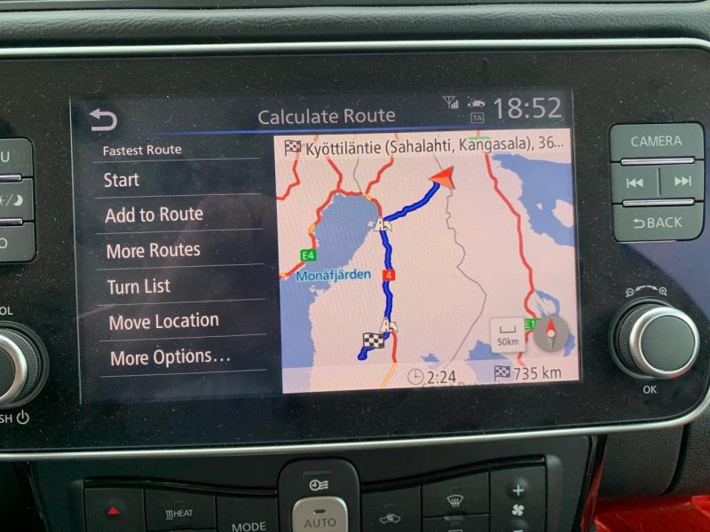 Olin päättänyt ajaa kotimatkan yhtäkyytiä yön yli. Tiesin jo etukäteen omasta kokemuksesta siinä tulevan haasteeksi Leafin akuston ylikuumenemisen ja siitä johtuvan pikalatausten hidastumisen. Näin saisin kuitenkin jälleen omakohtaisen kokemuksen siitä, miten Leafilla matkaillessa kannattaa pitkiä siirtymiä rytmittää.