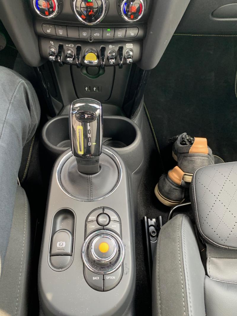 D:n eli ajovaihteen kytkeminen edellytti Minissä omasta Leafistani poiketen jarrupolkimen painamisen lisäksi myös vaihdevalitsimen kyljessä olevan napin painamista samaan aikaan, kun vaihdevalitsinta käytti taka-asennossa. Auto onneksi neuvoi minua tuon varmistusnapin painamiseen kun yritin ensin saada vaihdetta päälle ilman moisen napin kosketusta.