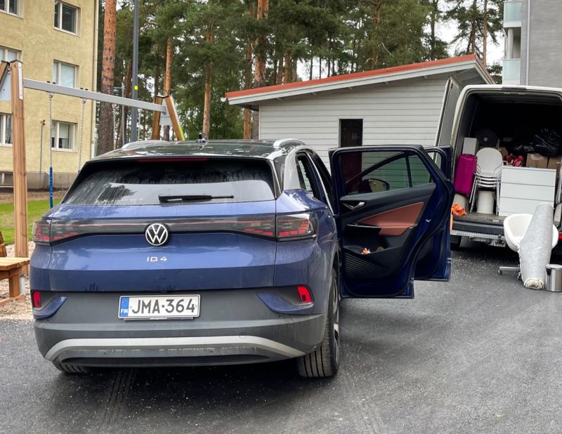 Toteutimme elokuussa 2021 yksiön muuttokuorman Tampereelta Ouluun kahdella ajoneuvolla kertasuorituksena. Toinen ajoneuvo oli Volkswgen ID.4 ja todellista muuttotaakkaa kuljettamassa oli pisin ja korkein, mutta varsin yleinen pakettiauto, jota kuitenkin saa ajaa Suomessa B-ajokortilla. Yhtään pienempään autoon muuttokuorma ei olisi mennyt ja Volkkarinkin koko takaosa täyttyi niin että vielä etupenkillä matkusti kaksi henkilöä. Pakussa matkusti myös kaksi henkilöä.