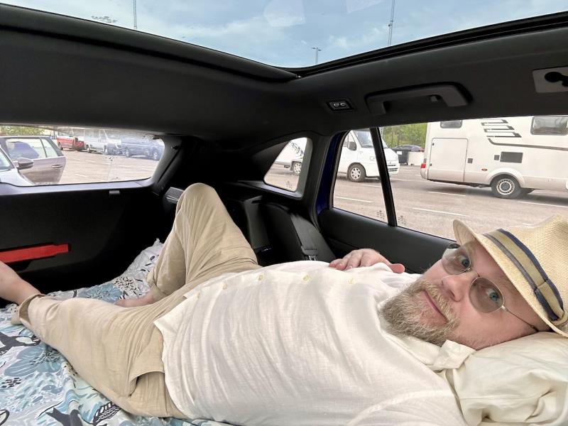 Edellä listaamieni juridisempien varustautumisten lisäksi tietenkin pesin ja puhdistin auton sisältä sekä ulkoa ja tyhjensin turhasta kertyneestä roinasta. Tilalle varustin auton takaistuimet kaatamalla mukavan noin 10 cm paksun patjan omaavan pedin lakanoineen tyynyineen sekä peittoineen. Kahden hengen matkalle matkatavarat sopivat turvallisesti kaadettujen takaselkänojien alle takajalkatiloihin. Tarkoituksemme ei ollut öitä majoittua autossa, mutta tuon pedin olen kokenut jo aiemmilla matkoila mukavaksi levähtämisen mahdolistavaksi tekijäksi automatkailussa. Päiväunet voi ottaa siinä melkein missä vain ja autossa on toimiva ilmastointi siksi aikaa.