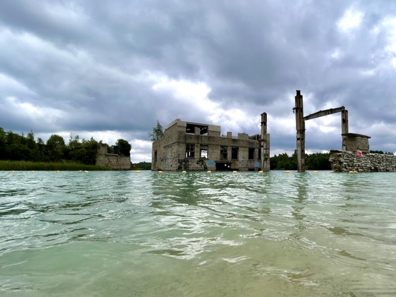 Tallinnasta ajoimme seuraavan päivän aikana tyypillisimmän 4/E67 -reitin sijaan läntisempää pienempäää tiestöä maisemista nauttien. Pian Tallinnan jälkeen bongasimme Rummu Järven, minkä erikoisuutena on kirkkaan veden valtaan jääneet entisen vankilan rauniot.