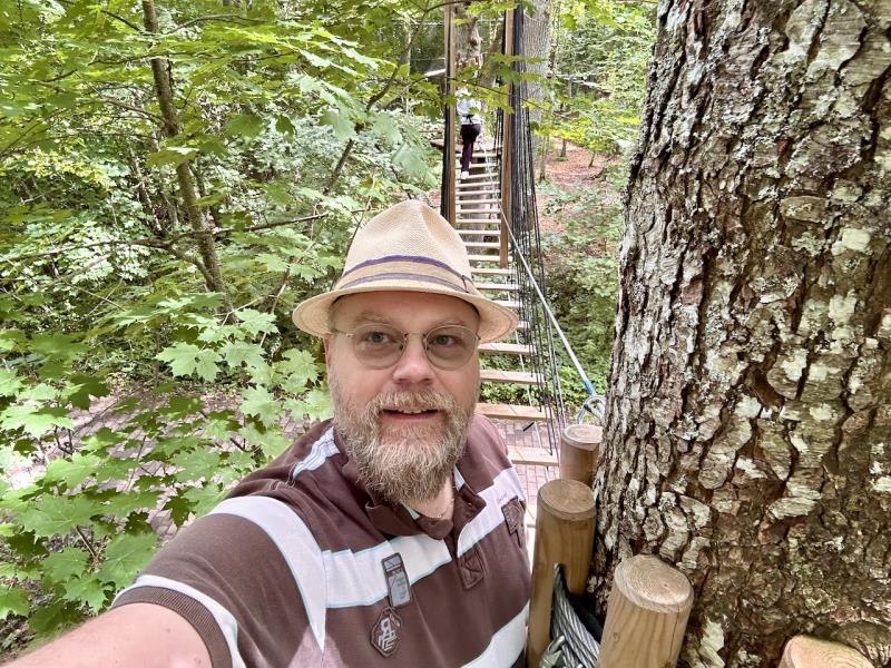 Pärnun pääkohteemme oli Valgerannan kiipeilypuisto. Siellä totesin, että Virolaisten turvallisuuteen liittyvät vaateet olivat Suomessa esimerkiksi Flowparkeissa totuttumaani hiemanväljemmät. Reitille pääsi ilman kypärää ja varmistuköysien kiinni oleminen oli enemmän käyttäjän vastuulla. Nimittäin ne sai reitillä molemmat yhtäaikaa irti, kun Flowparkissa olen tottunut siihen, että niistä saa aina vain yhden kerrallaan auki. Nämä eivät kuitenkaan meidän kiipeilyämme haitanneet.