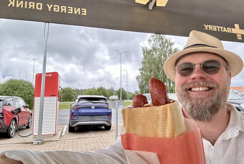 Parin yön ja päivän jälkeen suuntasimme Pärnusta aamupalan jälkeen poikittain maan halki kohti koillista Rakveren linnoitusta katsomaan. Circle K Mäo oli juuri sopivalla kohdalla nauttia hodari ja pitää vessatauko. Samalla latasin hetken samaisella 45 snt/kWh hinnalla, mitä maksoi lataus Pärnussakin.