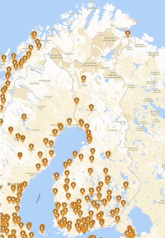 Kuvassa alla CCS + CHAdeMO, eli teholatauspisteet Suomessa 1.1.2019, kuva otettu Plugshare-sovelluksesta tuolloin. Tyhjältä vielä näyttää isossa osassa suurta maatamme.