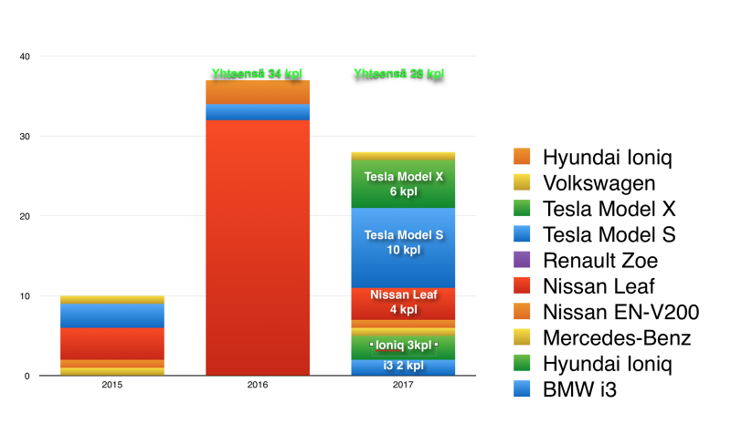 Vasta kevät ja kesä alkavat näyttämään 2017 vuoden todellista sähköautojen rekisteröintimäärää