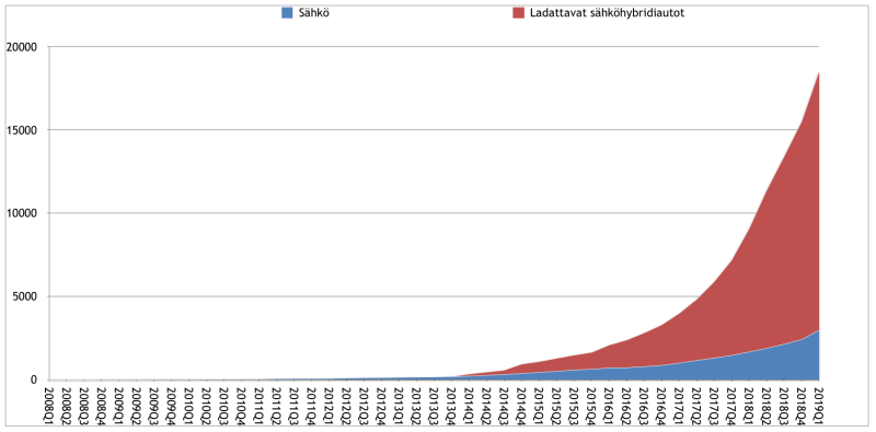 Sähköautojen kanta kehittyi 78 % edellisestä vuodesta Q1/2019