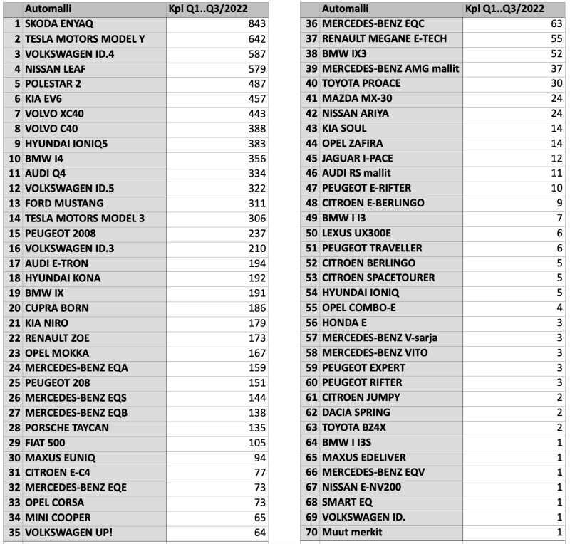 Sähköautojen nousukausi jatkui myös Q3/2022