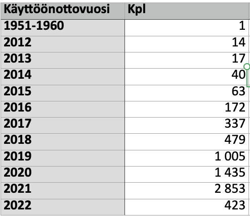 Kaikkien tämän kirjoituksen lukujen lähde on Traficom, tilastotietokanta.