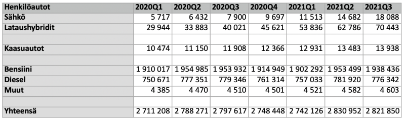 Q3 2019 2 774 577kpl ja Q3 2021 2 821 851kpl liikennekäytössä. 47 274 kpl lisäys tuntuu aika isolta.