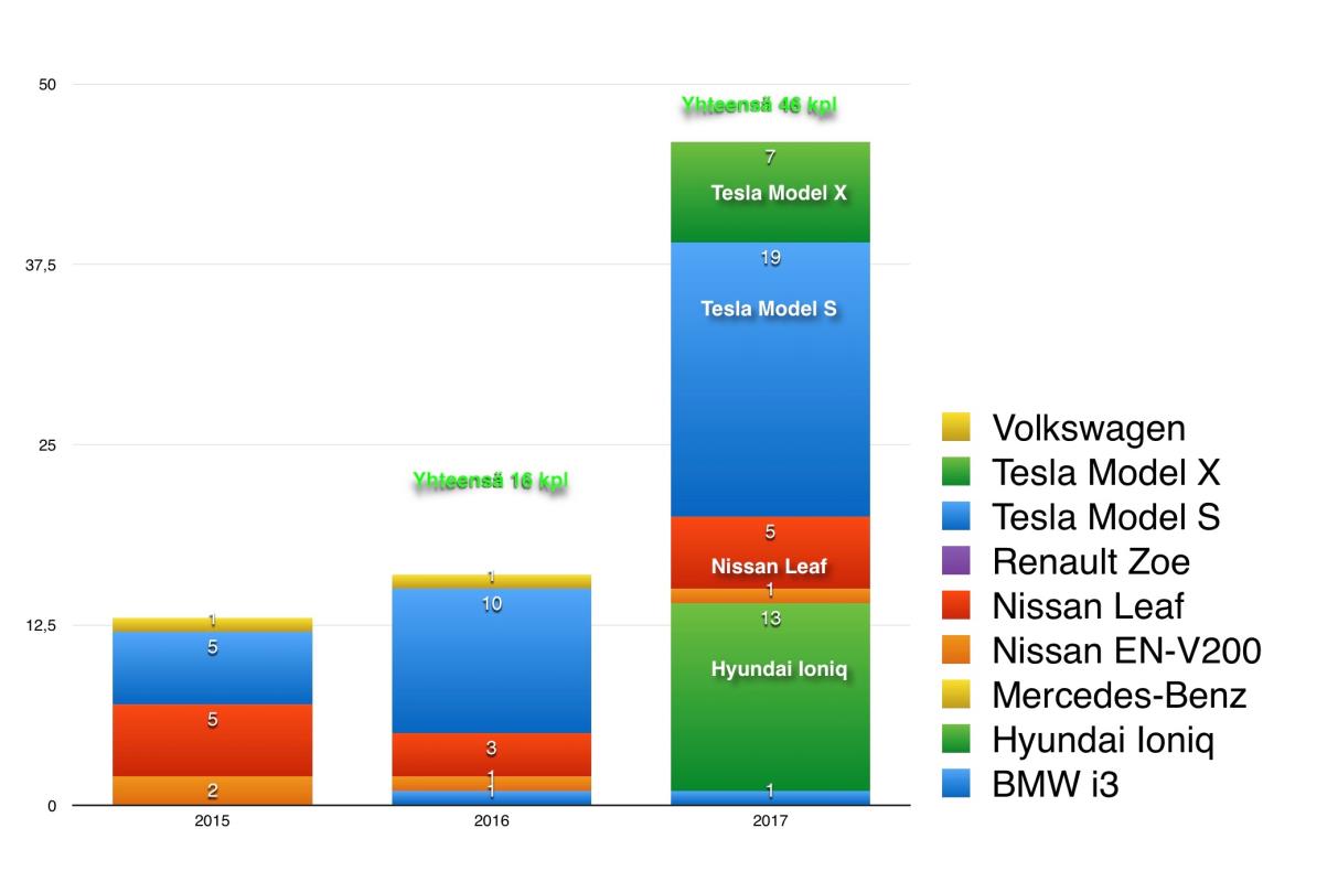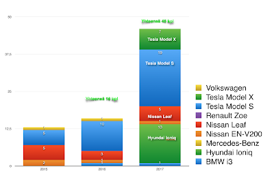Sähköhenkilöautojen ensirekisteröintien määrä lähes kolminkertaistui tammikuussa 2017!