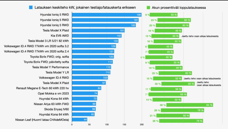 - Tesla Model Y Performance. Ei lämmittänyt akkua koko testin aikana. Oli lämmittänyt kotona ennen testiin lähtöä