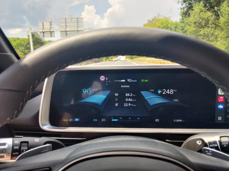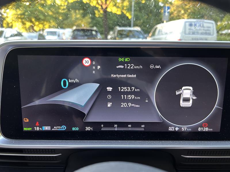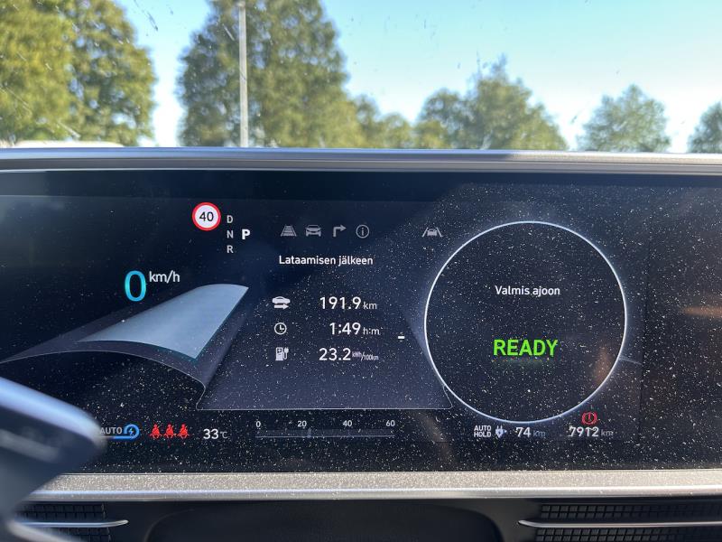 Kokonaisuudessaan ajoaikaa oli tähän mennessä kertynyt auton mittaristoon 8 tuntia ja 18 minuuttia ja matkaa oli kertynyt 845 kilometriä 19,2 kWh/100 km keskikulutuksella.