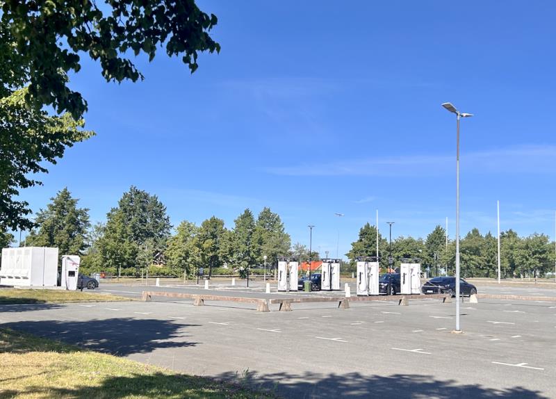 Laturille saapuessa autossa oli vielä peräti 24 % varaustaso ja akku olisi riittänyt pidemällekin, mutta seuraava näytti toistuvasti nollaa vapaata latauspistettä ja päättelimme sen olevan kovin ruuhkainen asema.