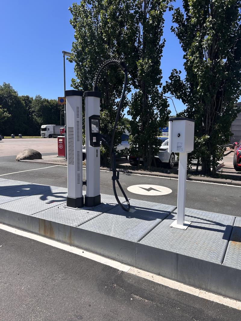 Tässä kohteessa oli lähellä tarjolla ruokapaikka, mistä haimme mukaan hieman paremmin ravitsevaa ruokaa latauksen aikana. Samalla alueella oli myös Kempowerin tekniikkaan perustuva raskaan liikenteen 360 kW:n tehoa antava nestejäähdytetty larausasema.