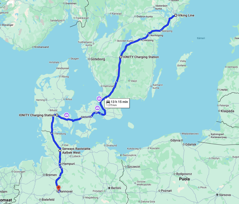 Kirjoitan tähän kokemukseni kun ajoimme siirtymän Tukholman satamasta Hannoverin majoitukseen niin sanotusti yhteen putkeen Hyundai Ioniq 6 -sähköautollamme. Matkavalmistelut esimerkiksi maakohtaisten tietullien ja ympäristölupien osalta aloitin jo toukokuussa ja niistä pääset lukemaan tarkemmin täältä. Pidempi matkakertomus tulee jonkin verran myöhemmin, koska 21 päivän matkasta on niin paljon kirjoitettavaa.
