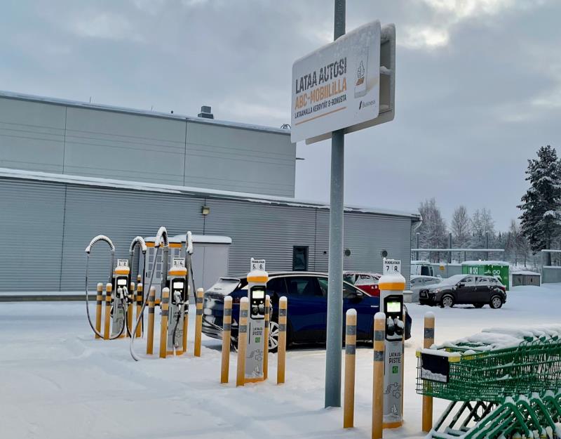 Toinen latauspysähdys tehtiin Pudasjärven ABC:n ABC-latauksessa.