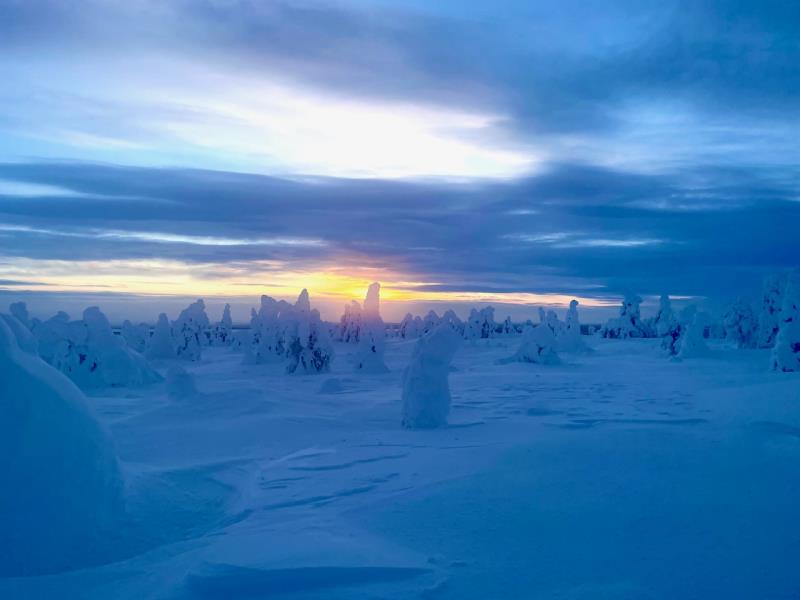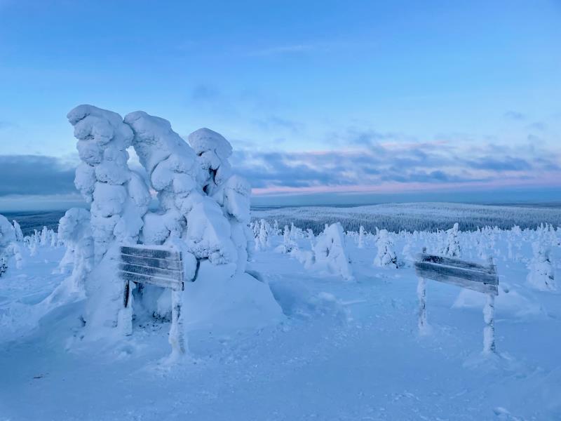 Jouluaattona aamupäivän aikana päätimme lähteä käymään Riisitunturilla, koska luvassa oli jopa poutaantuvaa keliä. Riisitunturi ei taaskaan pettänänyt kauniita maisemia toivovia matkailijoita. Valkoista puhdasta lunta oli joka paikassa. Tietenkin maassa, mutta myös puut niin vahvassa tykkylumessa, ettei sanoin osaa kuvailla.