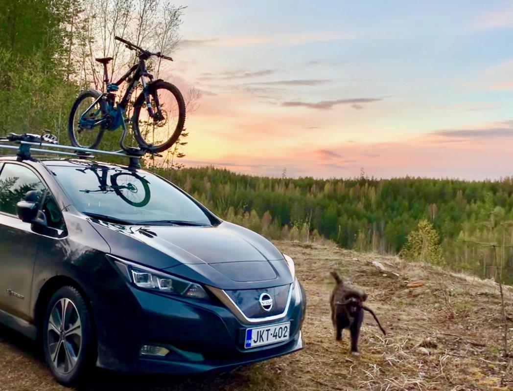 Sähköauto Leaf 40 kWh:lla sähköpyöräilemään Poronpolulle Kangasalta