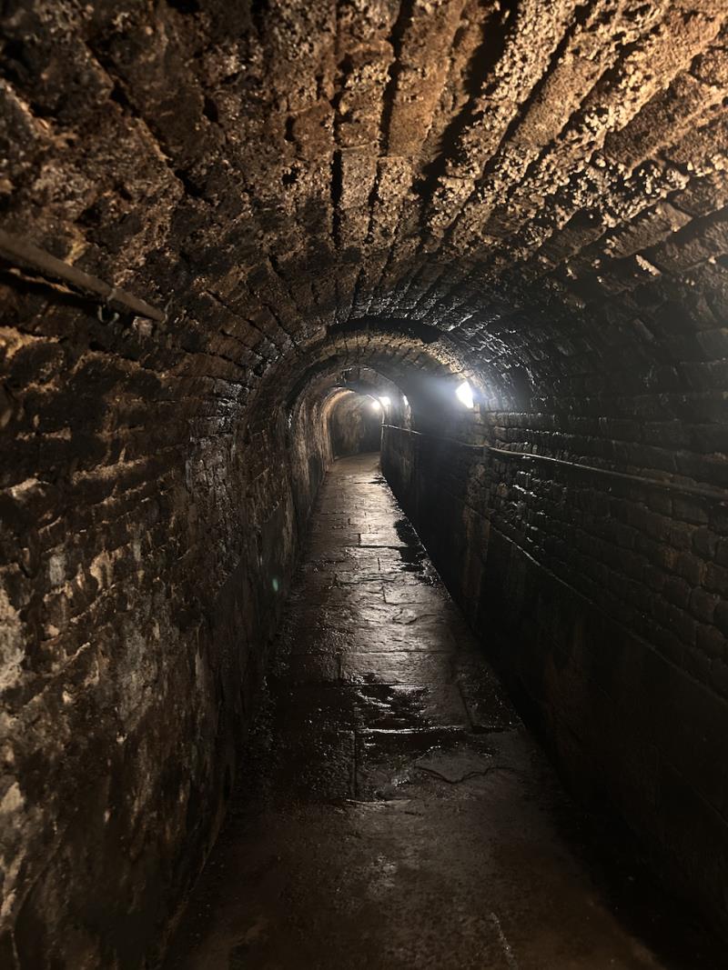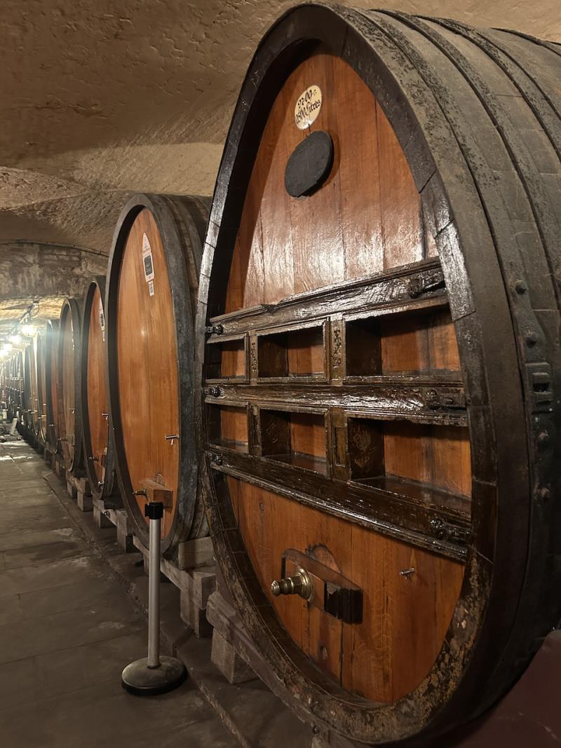Strasbourgin vanhassa sairaalassa, tai tarkemmin sen kellareissa on paikallisten Alsacen alueen viiniviljelijöiden yhteiskäytössä oleva viinikellari Hopital Civil. Mehän tietenkin suuntasimme sinne tutustumaan tunneliin, aistimaan viinitynnyreiden aromia sekä tekemään ostoksia kotiin viemisiksi.