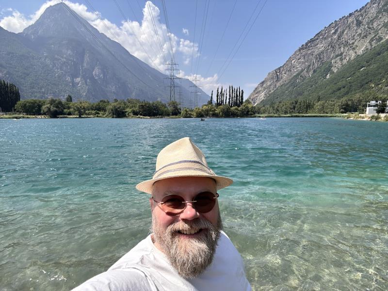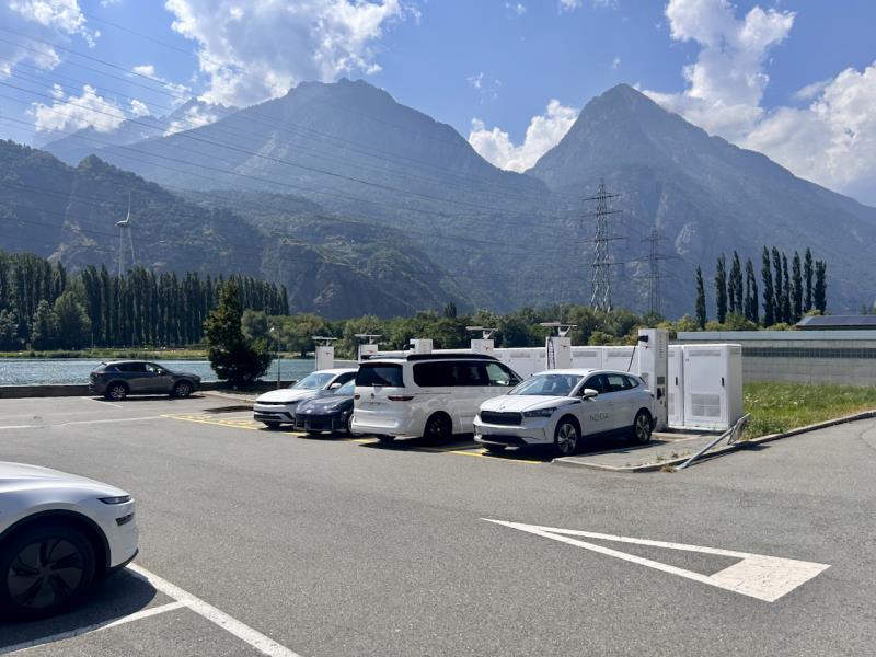 Mikä taukopaikka täällä Martigntyssä olikaan. Ionityn latausaasema sekä Teslan superi olivat kahden aseman välissä. Toinen vaikutti vähän perinteiseltä Veijo Esson baarilta, mutta toinen oli oikea monipuolisuuden keidas hyvällä ravintolalla sekä kaupalla varustettuna. Ei siinä kuitenkaan vielä kaikki, nimittäin aseman pihapiirissä oli täydellisen kirkasvetinen vuoristolampi, missä ihmiset uivat, suppasivat ja muutoin nauttivat aurinkoisesta päivästä. Ohikulkijoiden koiratkin pääsivät pulikoimaan. Me tyydyimme hetken kahlaamaan rantavedessä. Ostimme puodista mukaamme hieman juustoa ja muuta mukavaa.