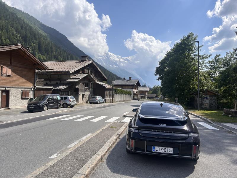 Martignyn lataus riitti erinomaisesti siihen, että ajoimme 129 päätyäksemme jälleen Ranskaan ja seuraavan yöpymisen kaupunkiin, La Clusaziin Hotel les Sapinsiin. Kävimme matkallamme pikaisesti pyörähtämässä myös Chamonixin kaupungissa, mutta se oli niin täyteen ladattu turisteja ja siellä oli selkeästi pyöräilytapahtuma, joten emme edes jääneet etsimään ruokapaikkaa varten pysäköintipaikkaa, vaan jatkoimme yöpaikkaamme. Olisimme halunneet myös käydä ajamassa Mont Blank -tunnelin läpi, mutta se oli suljettuna liikenneonnettomuuden takia.