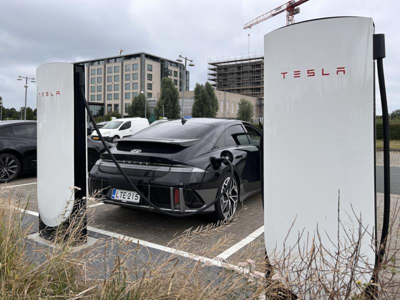 Tästä johtuen Alankomaissa tapahtui kaksi latausta lähekkäin. Teslan superissa ei ollut 800V tukea, joten latausteho täälläkin jäi 100 kW:n tuntumaan, mutta jatkoreittiä suunnitellessa akku täyttyi yllättävän täyteen ja latasin Teslalta 29,918 kWh 13,46 euron hinnalla.