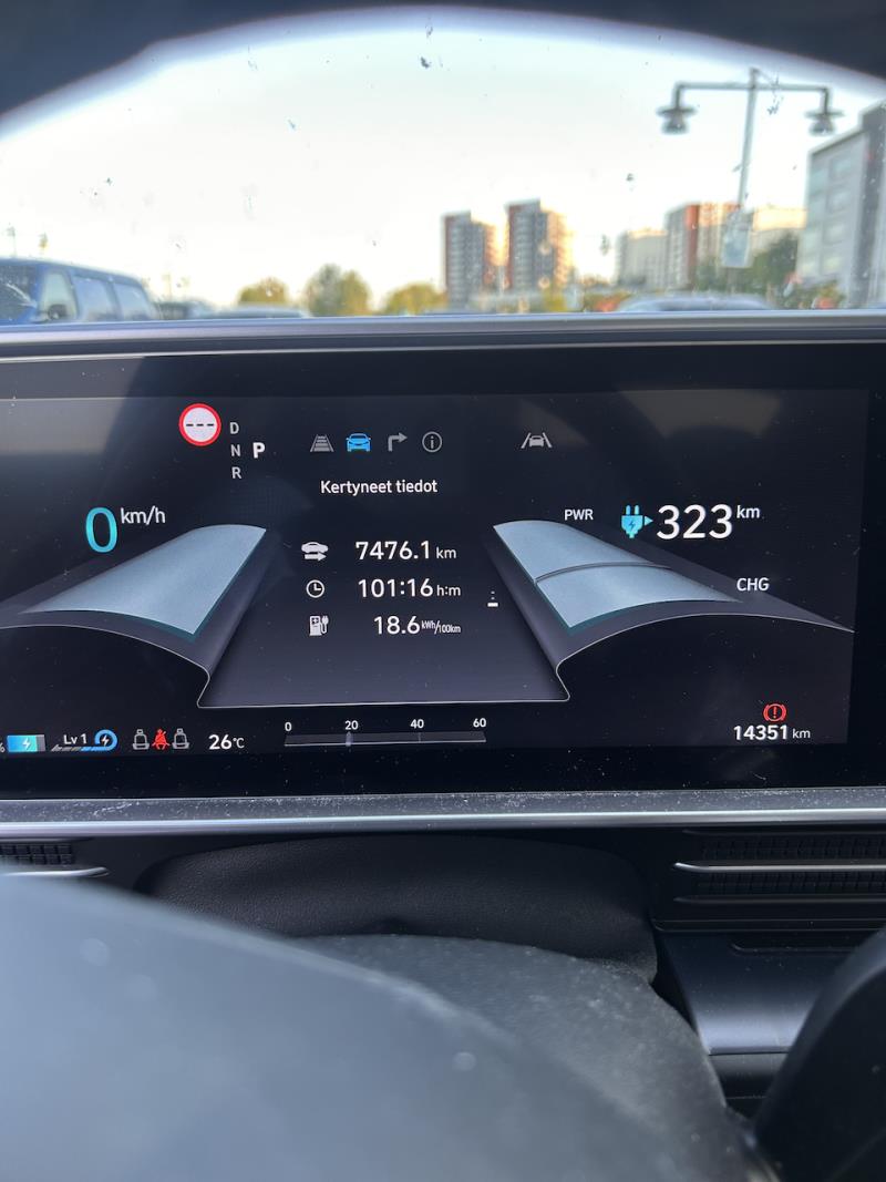 Auton näyttämä matka Tukholman satamasta takaisin satamaan oli 7476 km ja keskikulutus 18,6 kWh/100 km.