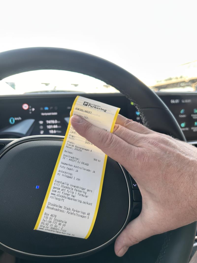 20.7. aamu olikin niin aikainen laivaan ehtiäksemme, että emme ehtineet käyttää hotellin aamiaista lainkaan, joten en ollut siitä myöskään maksanut. Autoon tavaroita pakatessa löysin tuulilasinpyyhkinmen alta ruotsalaisten terveiset, eli pysäköintivirhemaksulapun. 900 kruunua, minkä maksoin hetimiten pois, jottei jää ärsyttämään. Olin kyllä maksanut pysäköinnin Easyparkilla, mikä kyllä antoi jotain ilmoittelua yöllä ennen nukkumaan rupeamista ja huomasin myös että jostain syystä 6.30 lopppumaan merkitsemäni pysäköinti päättyykin 3.30. No, paikallinen pysäköinnin valvoja oli ollut ripeä ja laputtanut automme kello 3.34.