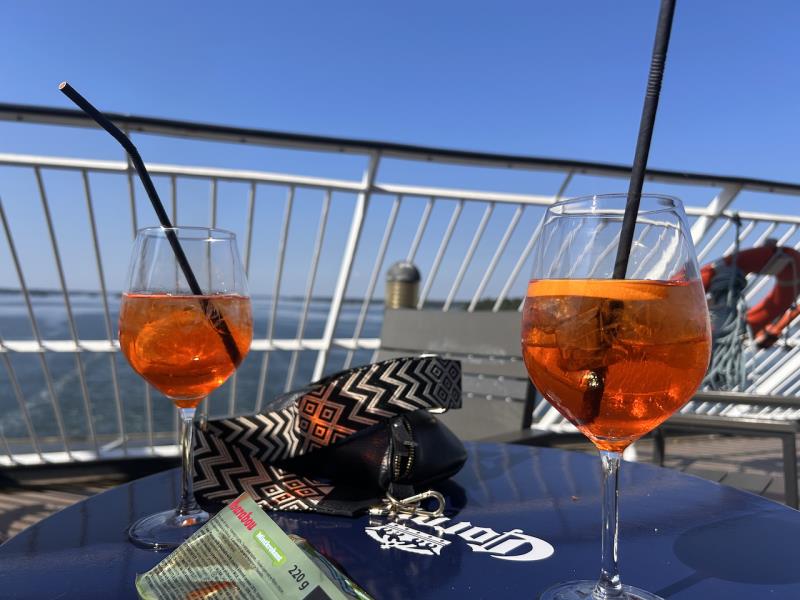 Päivälaiva Tukholmasta Turkuun on oikeastaan aika tylsä, mutta käytimme aikamme päätös Aperollit nauttien, hiema ostoksia vielä tehden, pelaten ja nukkuen.