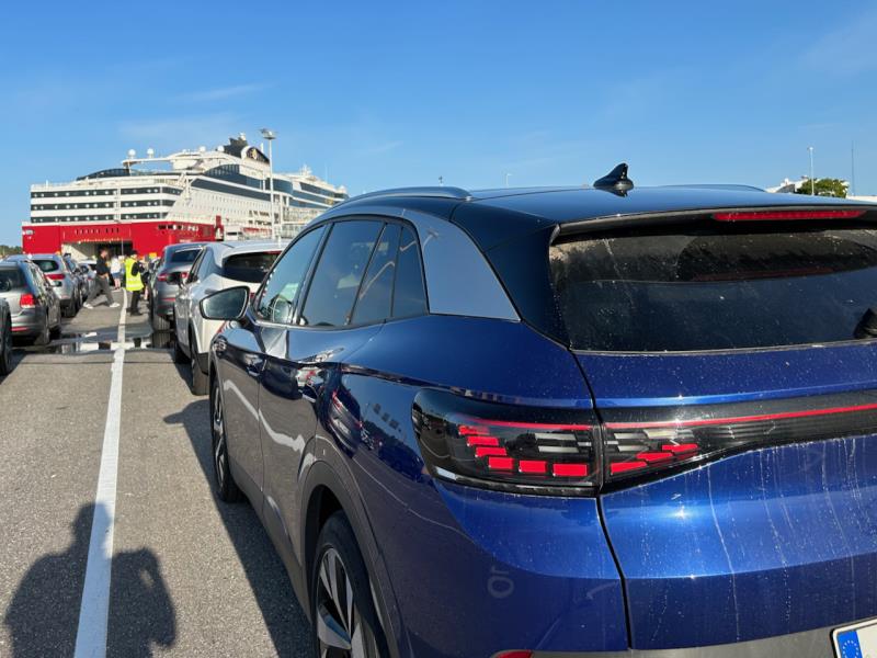 Lähtö tapahtui kotoa Tampereelta 17.7.2023 kello 5.06 ehtiäksemme riittävällä marginaalilla kirjautumaan Turussa laivalle automme kanssa. Keli oli hyvä ja liikenne veti erinomaisesti, joten otimme aikataulun ruhtinaallisesti salliessa Auran ABC:lla matkalaisille biotauon. Päätin kuitenkin ladata vielä turvallista kotimaista sähköä tuon pienenkin paussin ajan, vaikkei sille mitään tarvetta ollut. Turun satamassa olimmekin hyvissä ajoin ja pysäköimme muiden paikalla laivaan kirjautumisen avautuimista odottelevien autojen perään. Aikaa olisi nyt tuhlattavaksi lähemmäs kaksi tuntia ennen kuin pääsisimme laivaan, joten päätimme hyödyntää ID:n 3.2 softapäivityksessä saaneita pelejä ajankuluksemme. Sähköauton mukavuus oli jälleen odotellessa, kun se pysyy tasaisen ilmastoituna vaikka kuinka pitkään.