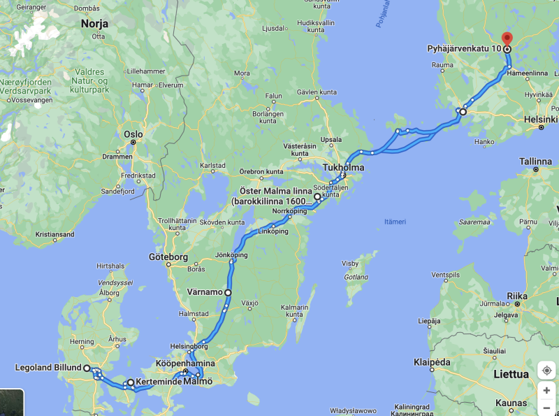 Sähköautomatka Tukholman kautta Tanskan Legolandiin