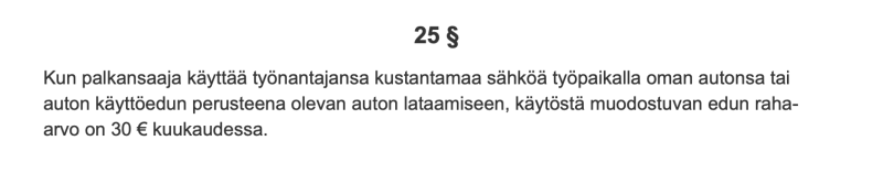 Kuitenkin maallikko-oletuksena pitäisin, että jos autoni työaikana on jossain muualla kuin työnantajani parkissa, jossa sattuu olemaan maksuton lataus, eikä se etenkään liity työnantajaani mitenkään, niin tuntuisi kummalta, jos se sitten kuuluisi mitenkään työnantajalle tai verottajalle.