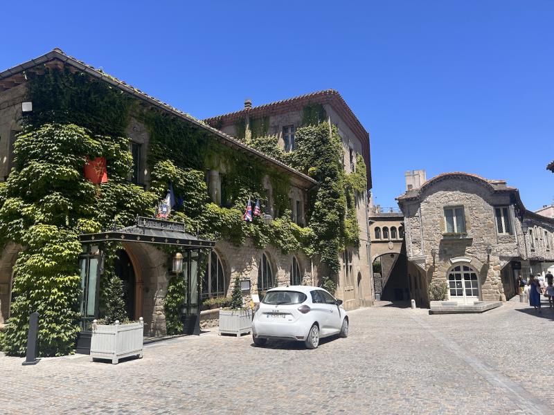 Alla olevassa kuvassa Carcassonnen linnoituskaupungissa sisällä sijaitseva hotelli. Me emme siellä kuitenkaan yöpyneet.