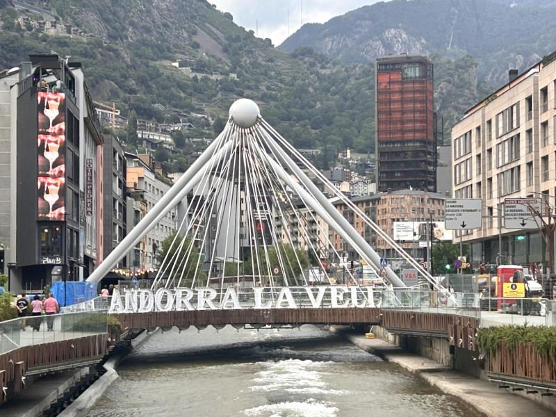 Pian Pamiersin tauon jälkeen horisontissa jo jonkin aikaa harmaina siintäneet Pyreinneiden vuoriston huiput alkoivat lähentyä ja tarkentua. Nousua kertyi ensin La Grande Mottesta käytännössä merenpinnan tasolta Pamiersin 325 metrin korkeuteen ja siitä Andorran La Vellaan mennessä tie kävi hetken yli 2000 metrin korkeudella, vaikka ajoimme maksullisen tunnelin läpi. Majoituksemme oli Andorra la Vellassa, eli pääkaupungissa, mikä on myös Euroopan korkeimmalla sijaitseva pääkaupunki ja se sijaitsee noin 1022 metriä meren pinnan yläpuolella.