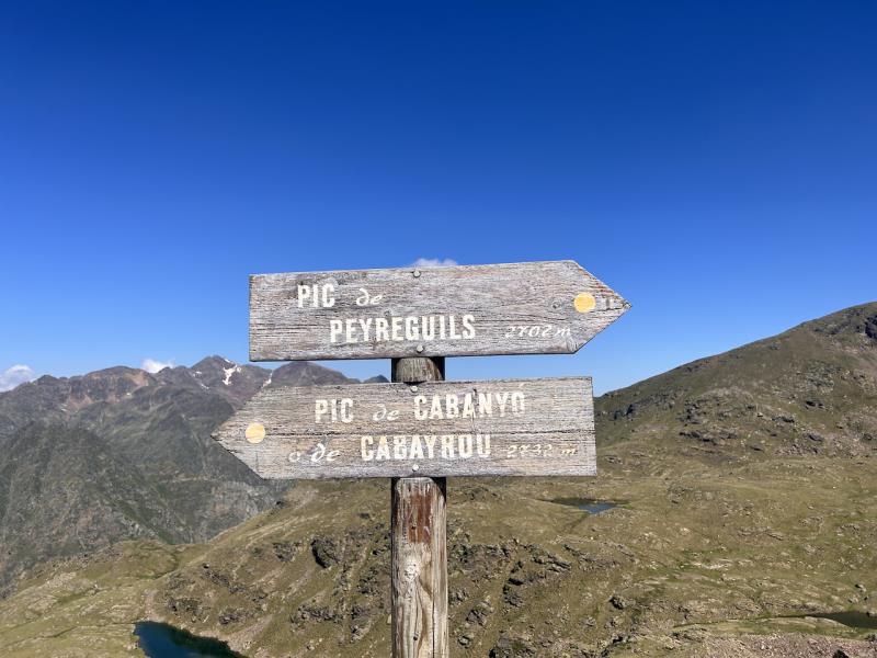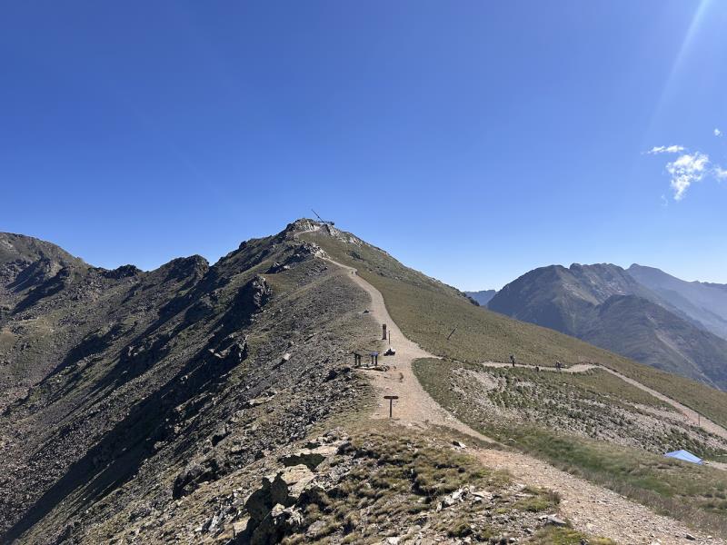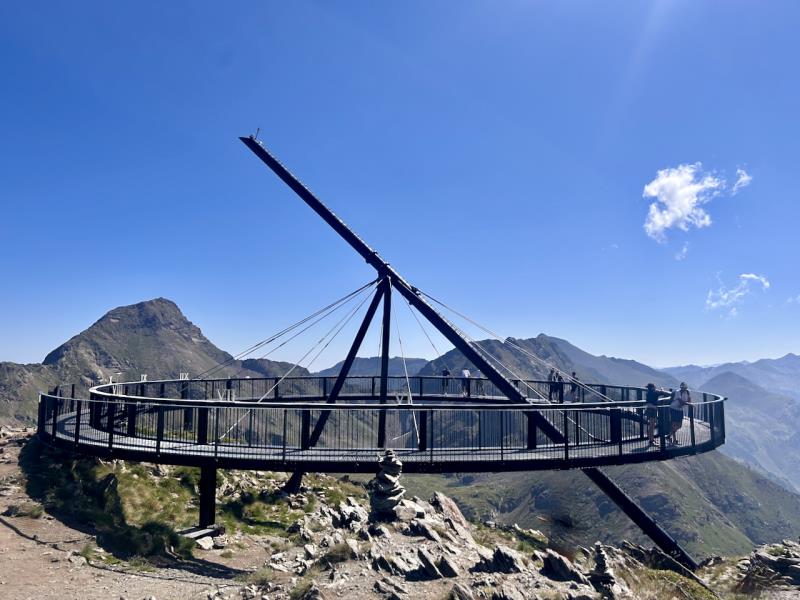 11.7 päätimme päästä huiputtamaan Andorrassa Pic de Peyreguilsin, tai tarkemmin sanottuna näkemään ja kokemaan siellä 2702 metrin korkeudessa sijaitsevan valtaisan suuren aurinkokellon ja kompassin yhdistelmän, mitä usein Andorrasta sosiaalisen median kuvina jaetaan. Alunperin tavoite oli ajaa mahdollisimman pitkälle ja korkealle autolla, mutta tiemme katkesi jo 1950 metriin, jossa autot opastettiin parkkpaikalle. Kysyessäni, että miksi ei saa ajaa pidemmälle, kuului vastaus että siellä on päivisin niin isot tietyön käynnissä, että vain huoltoautot pääsevät eteenpäin.