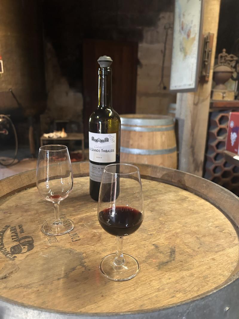 Bordeauxin alueelta majoituksemme valikoitui 94,36 euron hintainen B&B Hotel Bordeaux Saint André de Cubzac, saman nimisessä kaupungissa. Tämän majapaikan valintaan vaikutti aiempien majoittujien palautteissa ilmenevän hyvän ilmastoinnin lisäksi erityisesti kehuttu uudenkarhea olemus sekä kaikkein eniten hyvä saavutettavuus autolla ohikulkumatkallamme. Koska olimme yhdellä lukuisista kuuluisista viinialueista, tein majoitukseen kirjauduttuamme pikaisen tsekkauksen ja huomasin, että aivan vieressä on vielä hetken pieni viinitila auki, ja se idyllinen hieman pittoreski Les Grands Thibaus -niminen viinitila löytyikin osoitteesta 1. Rue des Grands Thibaus. Juuri meille sopiva paikka, koska emme halua matkoillamme päätyä viinitiloille, minkä tuotteita voisimme ostaa myös Suomesta Alkon hyllystä. Sisälle viinitilan myymälään päästyämme siellä selkeästi paikallinen asiakas oli noutamassa aiempaa tilaustamme. Isäntä ei osannut sanaakaan englantia, emmekä me tarpeeksi ranskaa (minä en sanaakaan), mutta saimme maisteltavaksi tilan punaviiniä, mikä osoittautui ihan hyväksi juomaksi. Niinpä sormella osoitellen ostin laatikkoon kaikkia tilan myymälässä olevia viinilajeja kotiin viemiseksemme. Ensimmäinen valkoviini jo ehdittiin maistellakin ennen tämän tekstin kirjoittamista ja se osoittautui erittäin makeaksi, mutta sopi hyvin kohtaisen raikkaan sitruksiseksi maustamani kala-katkarapu salaatin ja avokaadokastikkeen kera.