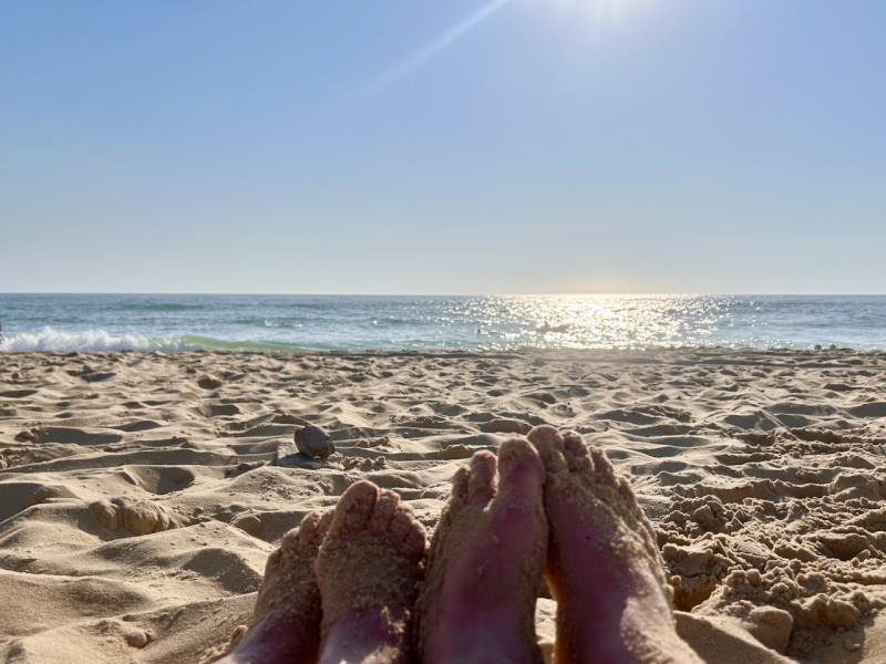 Bordauxin majoitukseen viinitilta viiniostoksilta palatessamme tuli puheeksi että minun tekisi mieli mennä uimaan. Katsoin kännykästä GoogleMapsista, että eihän tuonne Lacanaun rannoille ole kuin puolen sentin matka. Pienen mittakaavavirheen siinä sitten tein, koska matkaa tuolle iltapäivän uinnille kertyikim matkaa yhteensä 160 kilometriä. Vaan pääsinpähän Atlantin valtamereen uimaan. Aallokko oli aika korkeaa, mutta se ei minua haitannut ja kävin kolmesti pientä matkaa rannan suuntaisesti uimassa korkeimpien rantautuvien aaltojen takana. Viimeisen kerran rantautuessani olin sen verran ilmeisesti auringon ja uinnin väsyttämä, että unohdin kunnioittaa valtamerta ja kävelin rantaan selkä aaltoihin päin jo melkein rannassa, kun minua korkeampi aalto pyyhkäisi takaa ylitseni sillä seurauksella, että myös aurinkolasien virkaa toimittavat silmälasini lensivät meriveteen. Kuin ihmeen kaupalla nopeasti käden hiekkapohjaan laittamalla ne osuivat aallon palatessa merellepäin sormiini ja sain niistä otteen. Olisipa siinä ollut melko ikävä loppumatka melko sokeana ilman laseja.