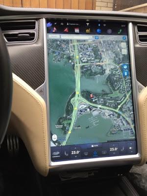 Auto on ladattu erittäin täyteen hienoa tietotekniikkaa ja sitä hoidellaan keskinäytöltä. Olen häkeltyneen ihastunut kaikkeen tuohon. Tunnustan olevani tekniikkafriikki ja olen viimeistään tässä vaiheessa täysin myyty Teslalle.