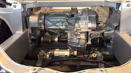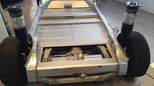 Noissa kuvissa näkyvä alustahan toki näyttää kovin siistiltä. Kyllähän Teslaankin sitten ennen toimivuutta tulee melkoinen määrä kaapelia ja moottorin ohjausyksikköä ym, jotka tästä siis oli riisuttu estetiikan vuoksi pois.