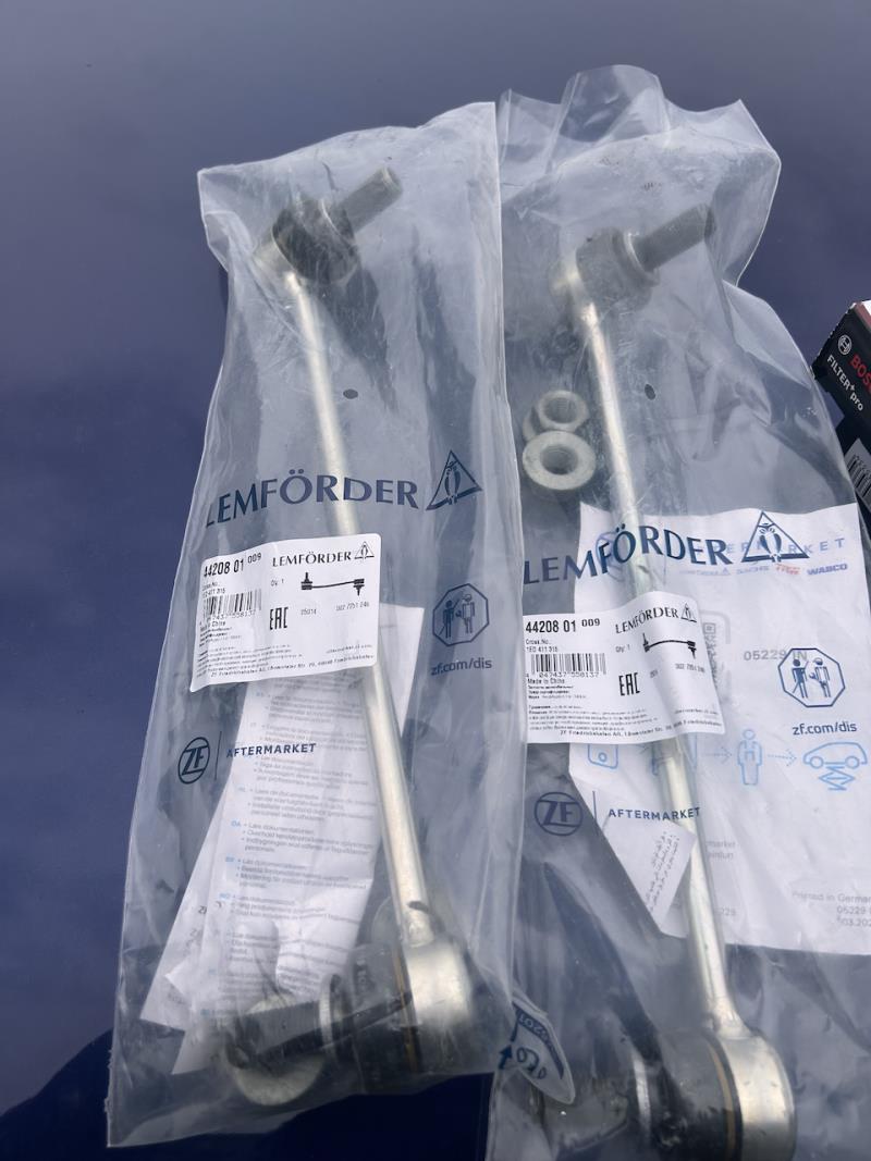 Toinen vakaajan pystytanko oli ilmeisesti yläpäästään jäänyt edellisessä korjauksessa löysälle ja päässyt väljistymään sen jälkeen nopeasti. Nyt autoon asennettiin minulla hyllyssä jo valmiina olleet Lemförderin koiranluut, mistä olin maksanut etukäteen varastoon tilatessani 89,90 euroa.