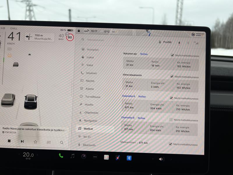 Paluumatkalla joitain kilometrejä ennen kehäkolmoselta poistumista Travel Assist taas kerran Teslassa riitautui kanssani ja kertoi että loppumatkan saan sitten ohjailla ihan itse. Pakko olla jälleen rehellinen, arvostan korkeammalle mm MEB-autojen Travel Assistin toiminnan, mutta kyllä kai ajan kanssa Autopilotinkin kanssa voisi ystävystyä, kunhan oppisimme tuntemaan toisemme paremmin.