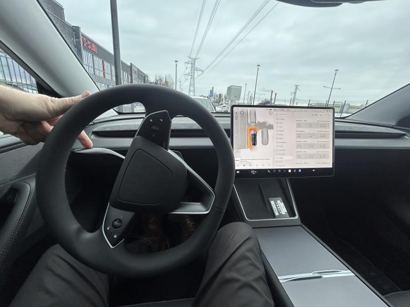 Minulla oli mahdollisuus vain lyhyeen 30 minuutin koeajoon, joten suuntasin pikaisen istuimen sekä ratin säätötoimenpiteen jälkeen kohti Kehä 3:sta. Autoliikeeen pihasta poistuessa kiittelin mielestäni tärkeintä uudistusta, nimittäin vaistomaisesti vasen käsi haki vilkun viiksestä ja sehän löytyi. Model 3 kaipaisi nyt pikaisesti tämän saman lisän.