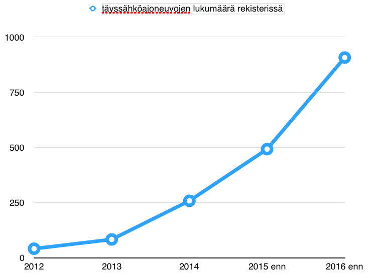 Ylläolevaan taulukkoon olen aiemmin mainitsemieni heikkojen signaalien analysoinnilla määritellyt omaa tulkintaani uusien täyssähköisten henkilöautojen ensirekisteröintimääristä vuonna 2016. (tämä siis on eri asia kuin tekstin alussa kuvattu rekisterissä olevien sähköautojen lukumäärä)