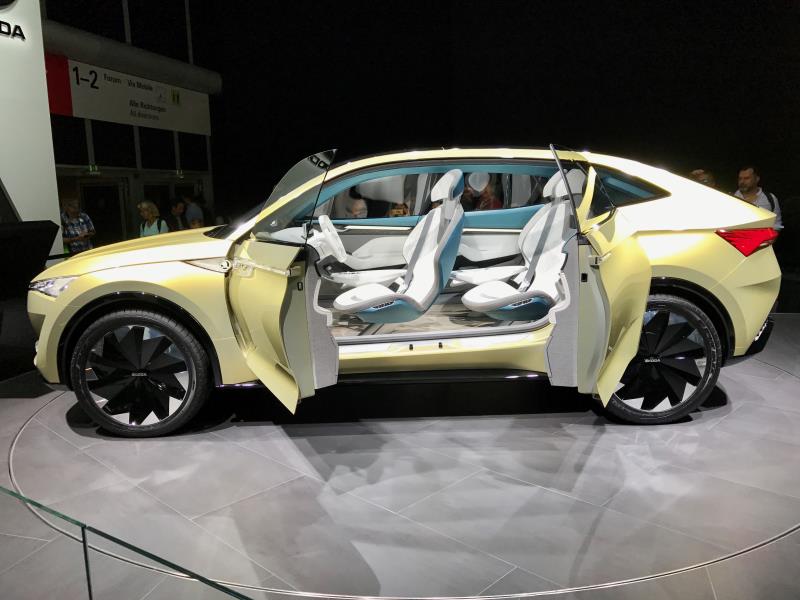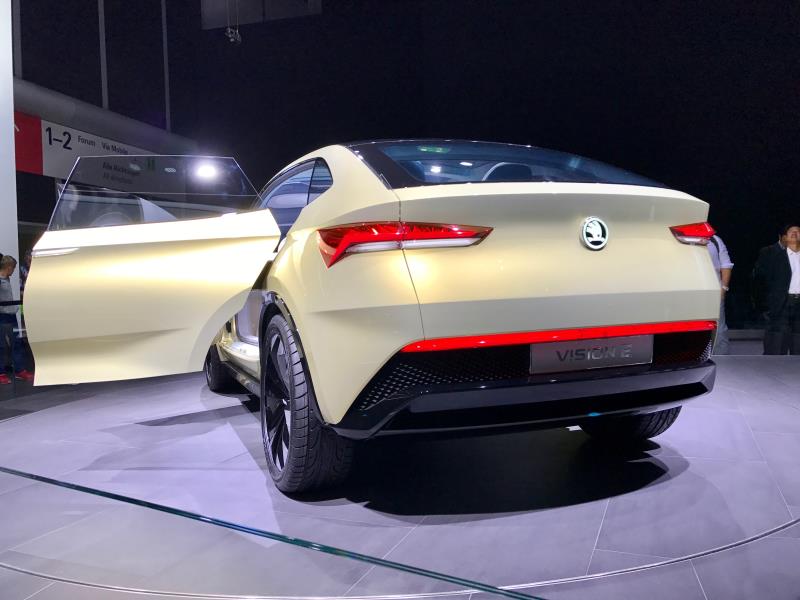 škodan Vision Enäytti Audia tuntuvasti jopa tuotantoon valmiimmalta sähköauton konseptilta. Vision E:ssä kerrotaan olevan kaksi sähkömoottoria, yksi edessä ja toinen takana sekä näiden yhteisteho olisi 225 kW.