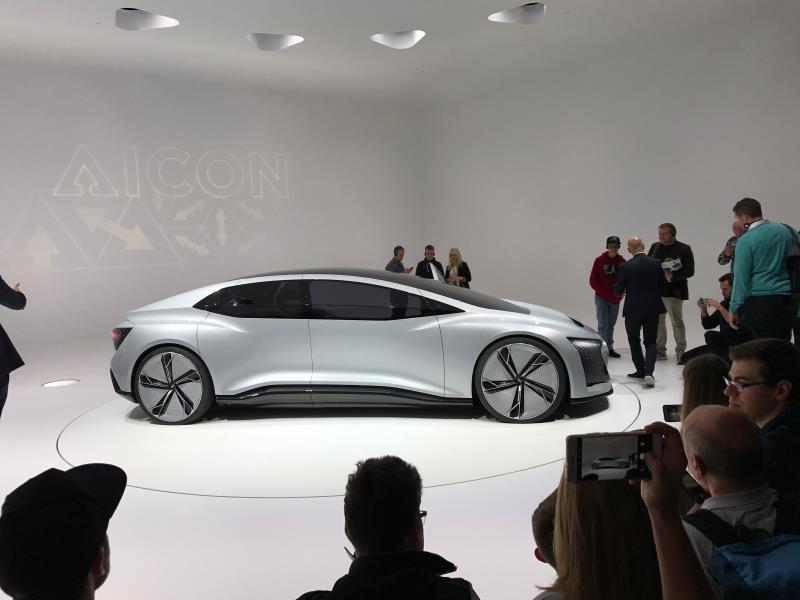 Audi Aicon on iso ja tilava liikuvan autonomisesti liikkuvan olohuoneen prototyyppi. Pituutta autolla on pituutta peräti 5,4 m ja leveyttä 2,1 m sekä korkeutta 1,5 metriä. Muotoilu on ainakin minun silmääni erittäin onnistunut, eikä auto näytä laisinkaan niin järkälemäiseltä, kuin sen mitoiksi ilmoitetaan, vaan hyvinkin sirolta ja virtaviivaiselta.
