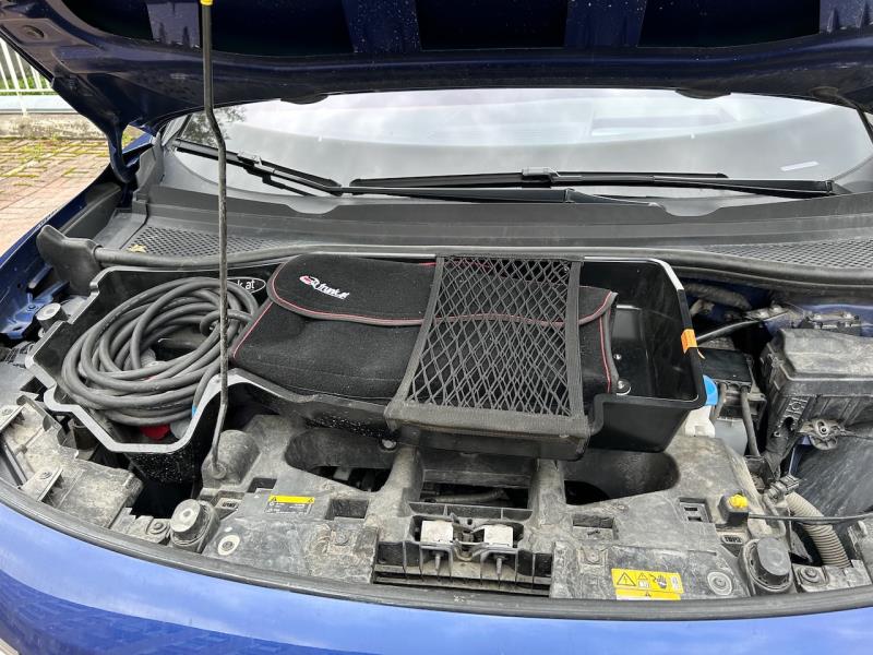Kuva alla: ID.4:ssämme on myös frunkki. Siellä säilytetään peräkontista tarvikkeita, mitkä kulkevat autossa aina mukana, mutta joita tarvitaan erittäin harvoin.