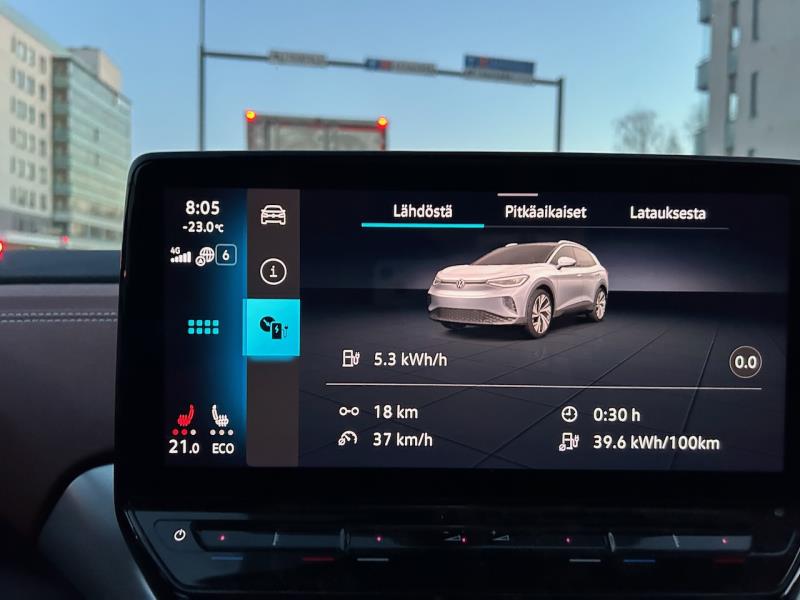 VW ID.4 -sähköauton kulutus kaupunkiajossa -24°C kelissä voi olla mitä vain