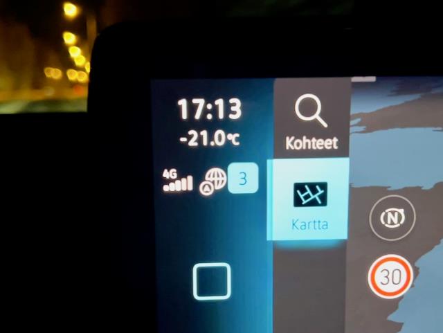 - Hieman pienemmällä -9°C pakkasella, ja 2.4 softalla toteutui 21,9 kWh/100 km, eli WLTP + 48 %