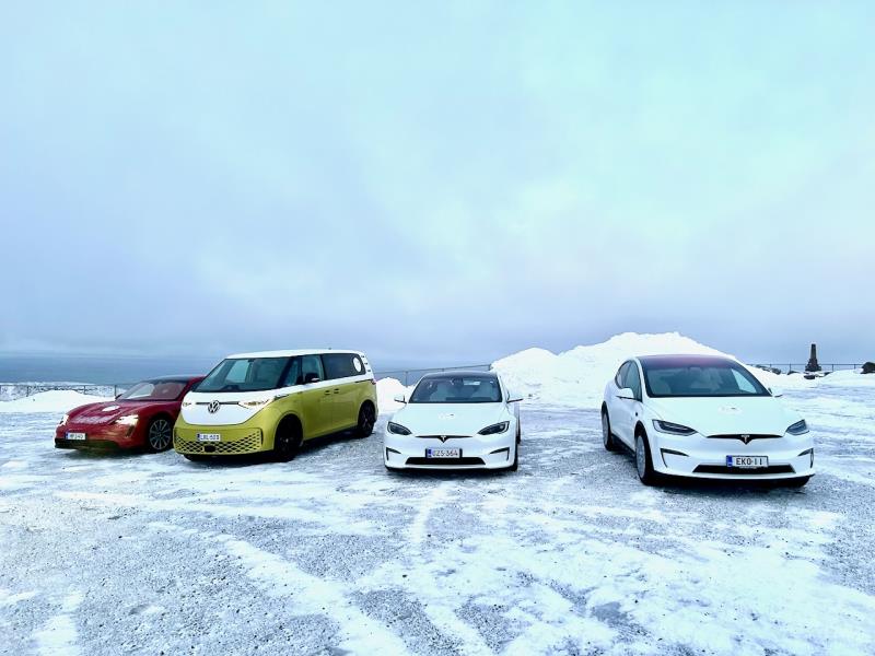 - Saariselkä - Honninsvåg: 429 km, 63 km/h (erittäin huono ajokeli loppumatkasta), 23,5 kWh/100km. Keli oli noin -2..-10°C, lähtö lämpimästä tallista 100% varauksella. (100 kWh kulunut sähköä)