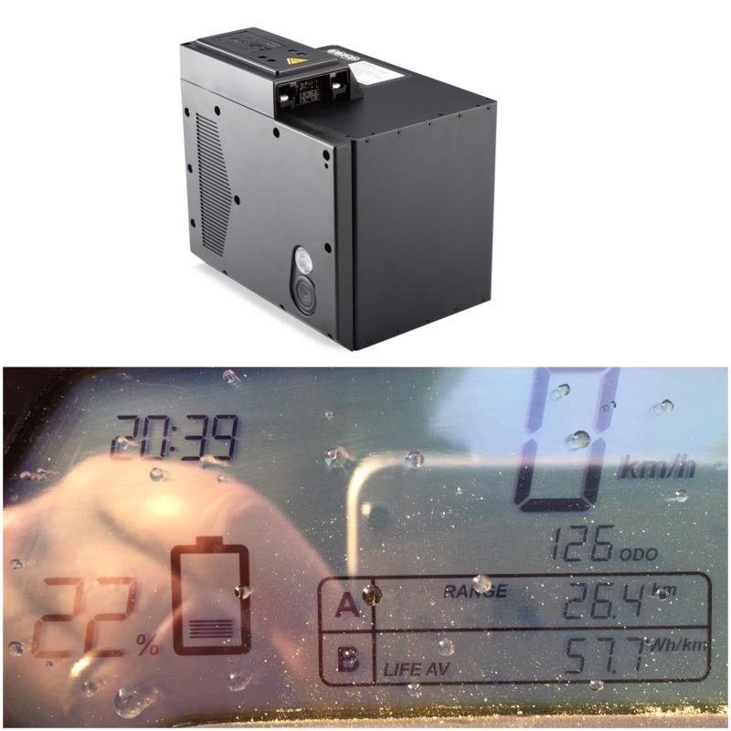 Tolkuttoman pieni ajon aikainen sähkön kulutus! Vain 5,77 kWh/100 km, joten 9,8 kWh akku saavuttaa luvatun toimintamatkan!